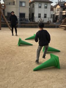 鬼にコーンをタッチされたら負けのゲームでは、フェイントのかけ