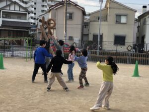 まずは氷鬼でウォーミングアップ。走り出すとすぐに体が温まり、