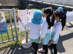 外に出て行った文字さがし散歩では、看板や標識などをよく見なが![]()